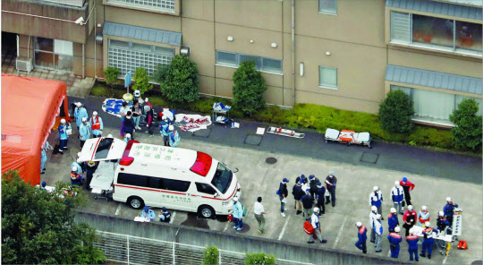 26일 오전 2시30분쯤 일본 가나가와현 사가미하라(相模原)시의 장애인 수용시설 ‘쓰쿠이야마유리엔’에 무단 침입한 20대 남성이 휘두른 흉기에 18~70세 남녀 19명이 사망하고 26명이 다치는 끔찍한 사건이 발생했다고 교도통신 등이 보도했다. 일부는 중태인 것으로 알려져 추가 사망자가 나올 수 있다. 피해자들이 이송된 도쿄 의과대학병원 의료진은 “강한 살의를 갖고 (흉기로) 찌른 것으로 보인다”고 했다.