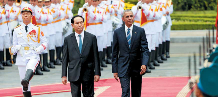 베트남을 방문 중인 오바마 대통령은 23일 하노이에서 쩐 다이 꽝 베트남 국가주석과 정상회담을 갖고 베트남에 대한 무기 수출 금지를 전면 해제하기로 합의했다. 미국은 지난 2014년 베트남에 대한 해상방위용 비(非)살상무기 금수(禁輸)를 풀었지만, 중국과 영유권 분쟁을 벌이고 있는 베트남은 무기 수출 금지 조치를 완전히 해제해줄 것을 요구해 왔다.