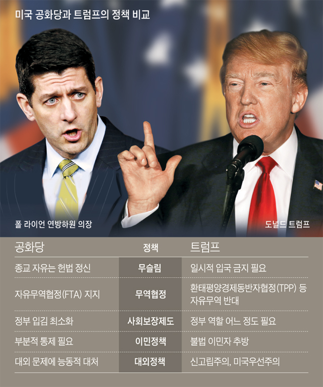 트럼프, 共和 주류 라이언과 담판 벌인다.