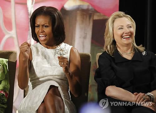2012년 3월 '여성의 날' 행사에서 함께 자리한 미셸 오바마 영부인과 힐러리 클린턴 전 국무장관/연합뉴스