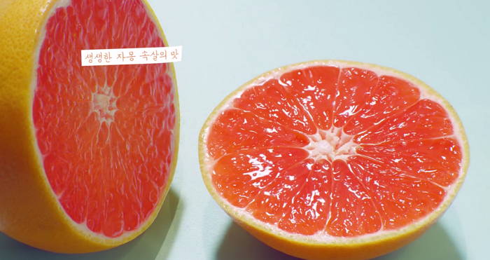 겉은 노랗고 속은 붉은 자몽의 반전 색감은 보는 것만으로도 침샘을 자극한다.