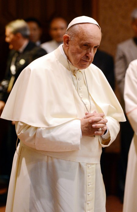 프란치스코 교황이 14일 오후 서울 광진구 중곡동 한국천주교중앙협의회 7층 소성당에서 기도를 하고 있다. (사진공동취재단) © News1