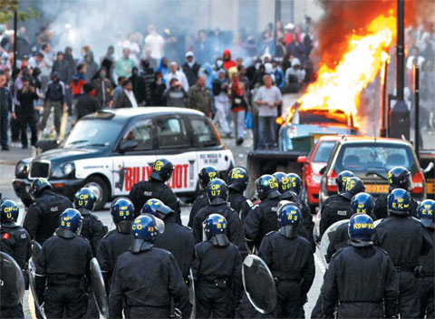런던 북부의 토트넘에서 폭동이 시작된 지 사흘째인 8일 런던 중심가 등 20여곳에서 폭동과 약탈이 동시 다발로 벌어지고 제2도시인 버밍엄, 항구도시 리버풀과 브리스틀 등 다른 도시로 확대되면서 영국이 국가 비상사태를 맞았다. 나라의 심장부가 활활 불타고 약탈당하는 장면을 본 데이비드 캐머런 총리와 런던시장 보리스 존슨은 이날 해외 휴가 중 급히 귀국했다. 이번 연쇄 폭동은 올해 동화 같은 로열웨딩과 내년 런던올림픽으로 포장된 '화려한 영국'에 가려졌던 청년실업과 빈부 격차로 점철된 이면을 노출했다.
