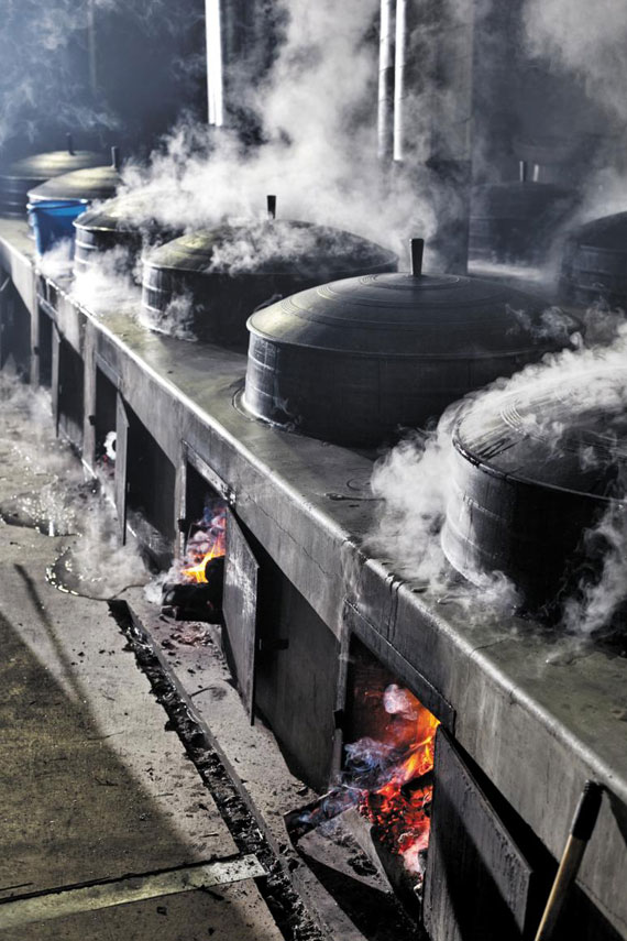 표면에서 증발하면서 생겨나고 있었다. 70㎏들이 가마솥마다 여기 포항 죽장면에서 수확한 콩이 가득 담겨 있었다. 메주를 만들