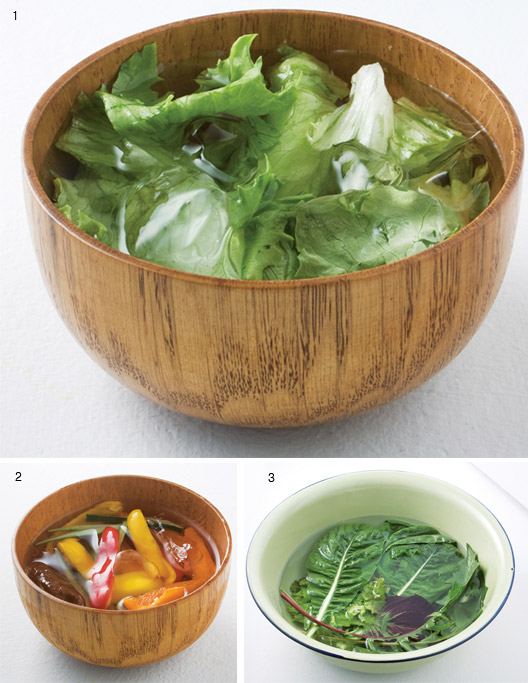 시들해지기 시작한 채소를 먹기 직전 얼음물에 담갔다 건지는 것은 가장 쉬운 방법이면서 효과도 확실하다. 찬물에 채소를 담가 먹기 전까지 냉장고에 몇 시간가량 보관하는 것도 좋은 방법이다.
