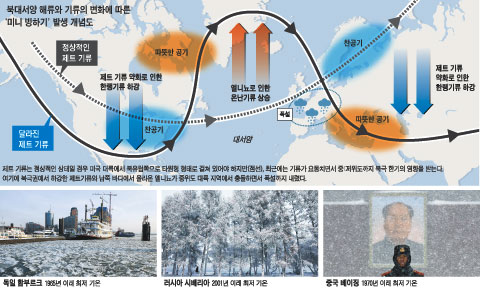 북극 찬공기 막던 제트기류 둑 터져 미니 빙하기