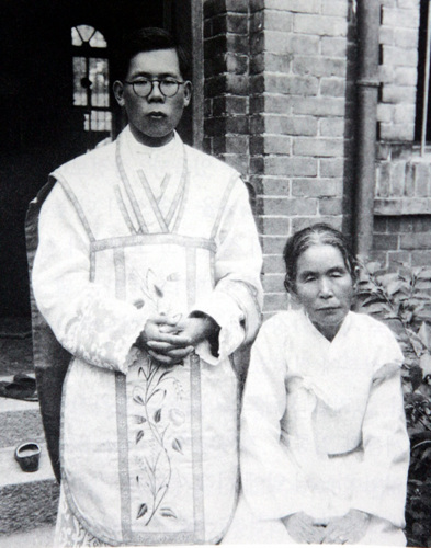 ▶빼앗긴 들에서 싹 튼 신앙= 김 추기경은 22년 5월 8일 김영석(요셉)과 서중하(마르티나) 사이의 5남 3녀 중 막내로, 대구에서 태어났다. 순교한 집안의 후손으로 일찍부터 종교 교육을 받았다. 하지만 사제의 길을 걷게 된 가장 큰 이유는 어머니의 권유였다. 부친이 일찍 세상을 떠난 후 옹기와 포목을 팔아 어렵게 살림을 꾸려가던 어머니는 군위보통학교에 다니던 김 추기경 형제에게 "이 다음에 커서 신부가 되라"고 당부했다.