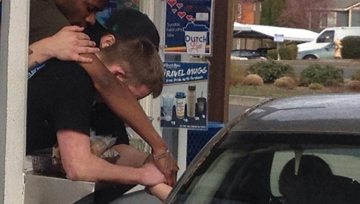 손님이 울자 직원들은 그녀 곁으로 다가가 손을 잡았다