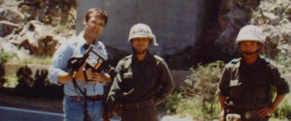 1980년 5월 광주민중항쟁 취재에 나선 위르겐 힌츠페터(왼쪽)가 광주 인근에서 계엄군과 찍은 사진.