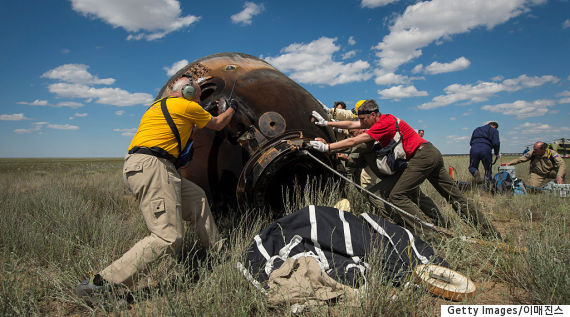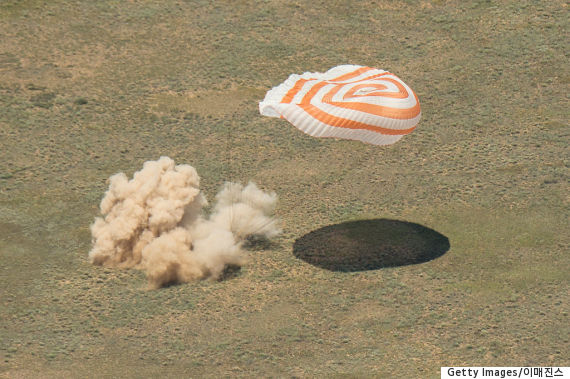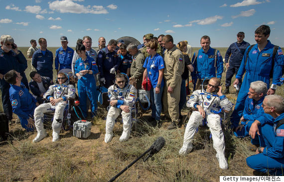 영국인 우주비행사 팀 피크, NASA의 팀 코프라, 러시아의 유리 말렌첸코가 6개월간의 우주 생활을 마치고 지구로 귀환했다.