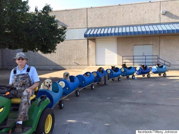 처음에는 4,5마리의 개를 트랙터에 태워 돌아다녔지만, 개들이 늘어나면서 직접 기차를 만들게 된 것. 원래 전문 용접공이었던 그는 플라스틱 배럴에 구멍을 내고, 그 아래에 바퀴를 붙이고 이어서 기차를 만들었다고 한다.